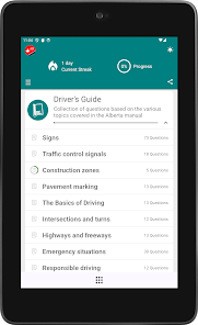 Study chapter by chapter with carefully designed practice questions based on Albertas Drivers Guide Questions are grouped by topics to help you focus on specific areas like traffic laws road signs and penalties