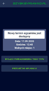 Aplikacja SzybkiePrawkopl co 5 minut sprawdza za Ciebie terminy egzaminw na prawo jazdy i wysya powiadomienia dziki czemu moesz zarezerwowa korzystny termin
