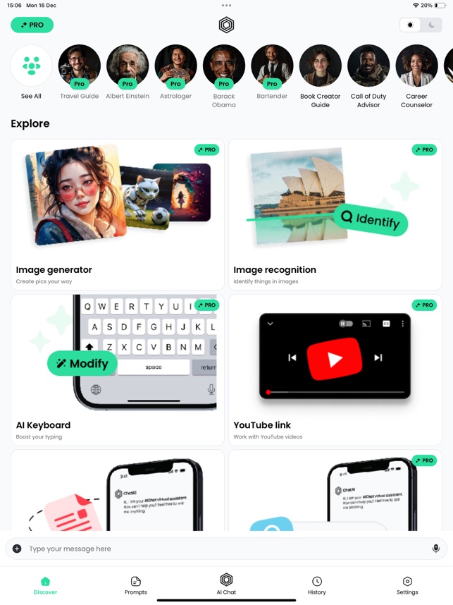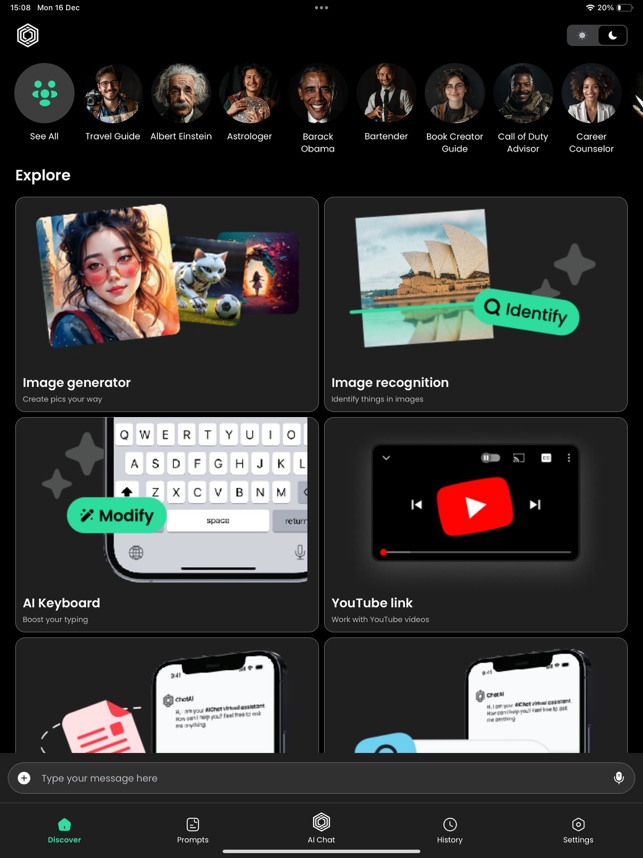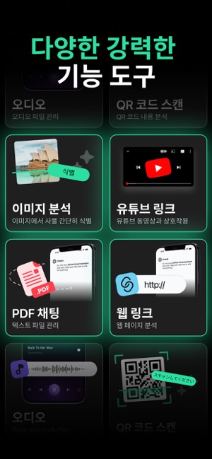 최신 앱 업데이트의 흥미로운 새로운 기능- YouTube 동영상 분석: YouTube 동영상 링크를 업로드하고, 사전 설정된 질문 중에서 선택하여 AI에 질문하거나 직접 만드세요. 앱은 귀하의 요청에 맞게 요약, 핵심 요점, 번역 및 자세한 통찰력을 제공합니다.- PDF, 웹 링크, 이미지 등 분석: AI의 힘을 사용하여 PDF 및 웹 링크에서 이미지에 이르기까지 다양한 콘텐츠를 분석하여 정확하고 통찰력 있는 결과를 제공합니다.- AI 기반 사용자 정의 키보드: 귀하의 글쓰기 스타일에 맞춰 조정되는 혁신적인 AI 키보드를 소개합니다