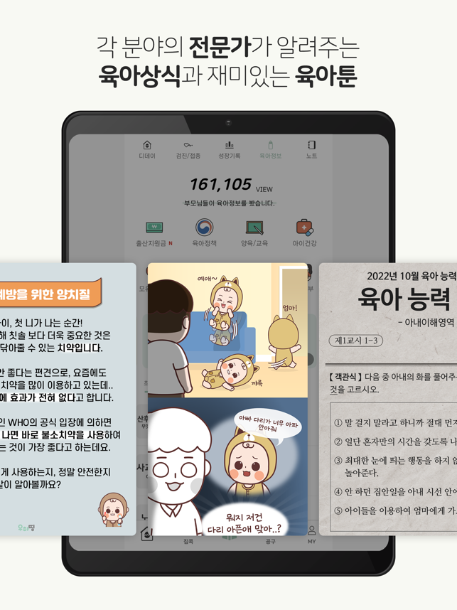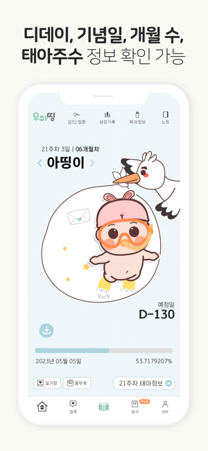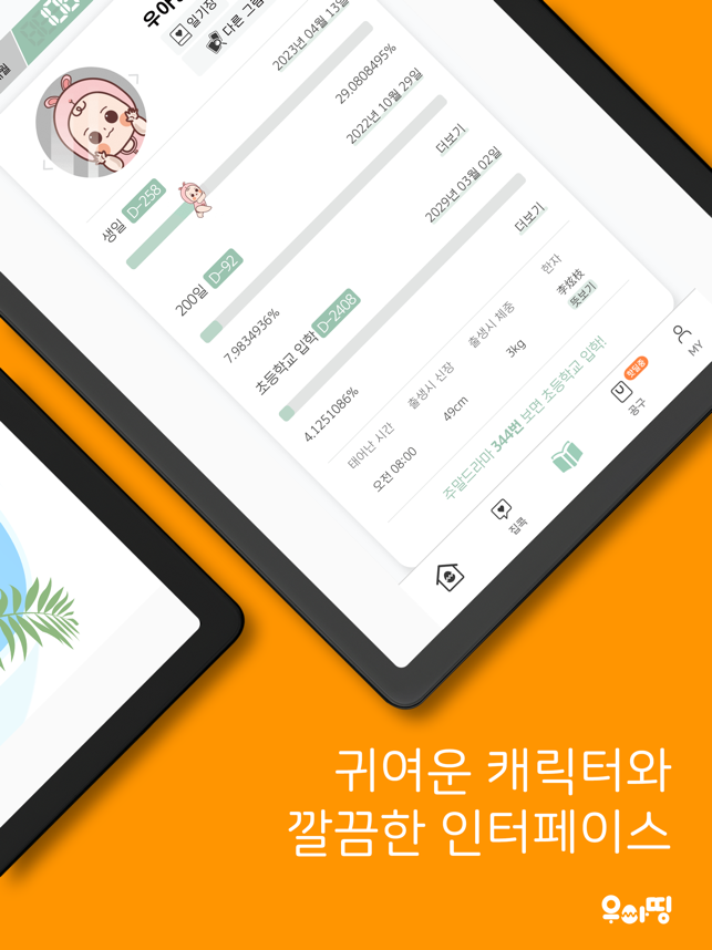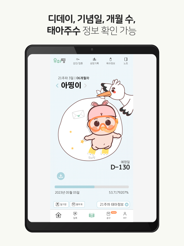 임신부터 출산, 육아까지! 엄마들 사이에서 위젯 예쁘기로 입소문 난 유명해진 바로 그 앱! 너무나도 귀여운 열두띠동물 캐릭터가 함께하는 아기 필수 육아앱 추천! 1) 태아부터 출산 후 까지 주 수, 개월 수, 기념일까지 자동으로 계산해줍니다. 이른둥이와 여러 명의 아이등록도 가능하답니다. 잊어버리기 쉬운 아이의 출생시간, 출생시 키, 몸무게, 이름 한자 뜻도 저장할 수 있어요! 공유코드를 통해 엄마,아빠가 서로 공유할 수 있습니다.2) 영유아검진을 알림 받고 결과지까지 보관 할 수 있어요. 4) 키, 몸무게, 머리둘레를 입력하면 국가표준수치로 성장백분위를 분석해준답니다. 누적 성장기록표를 확인하세요.5) 모유수유 전문가, 수면교육전문가 등 각 분야 전문가들이 알려주는 고퀄리티 육아상식, 자주 바뀌는 영유아 정부정책 등을 빠르게 만나보실 수 있고, 육아툰, 육아밈 등으로 즐거움을 얻을 수 있어요.6) 육아일기가 100장의 일기가 모이면 귀여운 우아띵프렌즈 캐릭터가 담긴 육아일기장으로 출판도 가능하답니다.7) 귀여운 우아띵프렌즈 캐릭터로 아이와 함께 할 수 있는 놀이를 제공해요. 색칠공부, 선긋기, 다른그림찾기 등 매일매일 업데이트 되고 있으니 무료로 받아가세요.8)아이템을 이용한 우리아기 캐릭터 꾸미기로 육아의 즐거움을 느껴보세요.9)하트경매를 통해서 육아용품 등을 무료로 득템 할 수 있는 기회도 있답니다.9)핸드폰을 바꿔도 네이버, 카카오톡, 애플, 구글 로그인 정보만 있으면 복원 가능하답니다. 우아띵은 고객님의 개인정보를 절대로 수집하지 않아요. 보험회사 등에 개인정보 유출 걱정은 No~!10)아이를 키우면서 양육비가 얼마나 들었는지 재미삼아 볼 수 있는 우아띵청구서 기능도 이용해보세요.