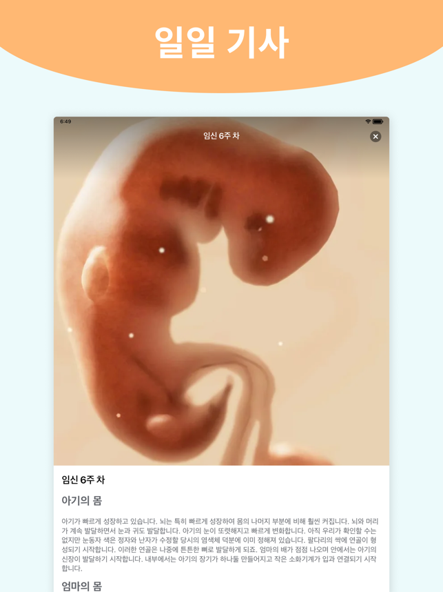 세계를 선도하는 임신 추적 앱을 오늘 다운로드하여 주간별 임신 정보와 관련 기사를 무료로 확인하세요!임신+ 앱에서는 전문가의 조언과 일일 기사, 보건 의료 팁, 아기 발달을 추적할 수 있는 상호작용형 3D 모델을 모두 만나보실 수 있습니다. 아기가 태어나기를 기다리는 전 세계 가족분들이 임신+를 지금까지 8000만 회 다운로드하셨습니다. 저희의 전 세계 커뮤니티에 오늘 합류하세요! 아기 발달► 배반포에서 태아를 거쳐 아기까지 발달 과정을 보여주는 상호작용형 3D 모델 ► 과일과 동물, 디저트로 아기 크기를 상상할 수 있도록 돕는 아기 사이즈 가이드► 임신 기간에 주마다 어떤 일이 생기는지 알려주는 임신 주별 가이드► 중요한 이정표를 쉽게 알아볼 수 있는 간단하면서 유익한 임신 타임라인임신 가이드 및 정보► 모유 수유, 운동, 식품, 쌍둥이 등을 다루는 심층 임신 가이드 ► 사용자의 임신 단계에 맞춘 일일 임신 기사► 2D 및 3D 스캔으로 확인할 수 있는 주별 이미지► 팁, 비결 및 유용한 정보를 제공하는 일일 블로그 게시글► 본인의 배 사진을 업로드하여 시각적 임신 일기 작성 가능임신 도구► 아기가 언제 태어날지 예상해볼 수 있는 출산 예정일 계산기► 아기 움직임과 활동을 추적하는 태동 측정기► 임신부의 체중 변화를 지켜볼 수 있도록 돕는 임신부 체중 기록► 분만하는 동안 진통 양상을 측정할 수 있는 진통 타이머계획 및 구성► 임신 관련 예약을 계획하고 기록할 수 있는 임신 캘린더► 임신부, 출산 파트너, 아기의 병원 방문을 준비하도록 돕는 출산 가방► 필요한 것과 가지고 싶은 것을 맞춤화하고 정리하여 내보내기할 수 있는 임신 계획► 할 일과 사야 할 것을 구상할 수 있는 할 일 목록 및 아기용품 쇼핑 목록► 좋아하는 이름의 아이디어를 얻고 공유할 수 있는 수천 가지의 아기 이름 검색 결과독점 3D 모델배반포에서 태아, 아기에 이르는 임신의 주별 진행 상황을 보여주는 저희의 고유한 3D 모델을 확인하세요. 저희의 3D 모델이 배 속에서 자라는 아기와의 유대감