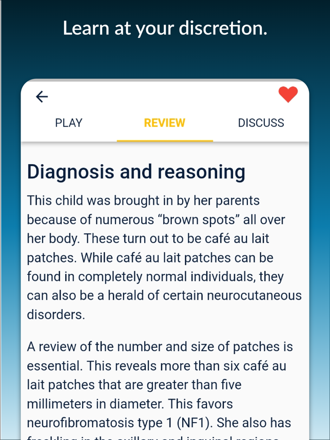With Prognosis, you can improve your ability to diagnose and immediately manage key clinical presentations associated with a disease, having access to relevant facts and succinct explanations behind the underlying diagnostic and management rationale. Prognosis is designed for practicing physicians, medical students, nursing professionals and other healthcare practitioners who love medicine and want to thrive as world-class decision makers. After all, practice makes perfect; and practice can be fun! Our catalog offers cases spanning a wide range of medical specialties, all which can be played in minutes. Each case is also accompanied by a concise yet comprehensive discussion of the diagnostic reasoning, as well as and key learning points for you to take home. Prognosis cases are based on the actual clinical experiences of more than 200 physicians across 33 specialties. New cases are released every week, often in keeping with global endemic and epidemic trends, to help you brush up on