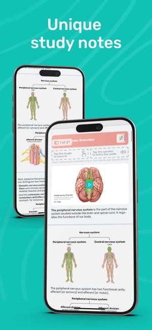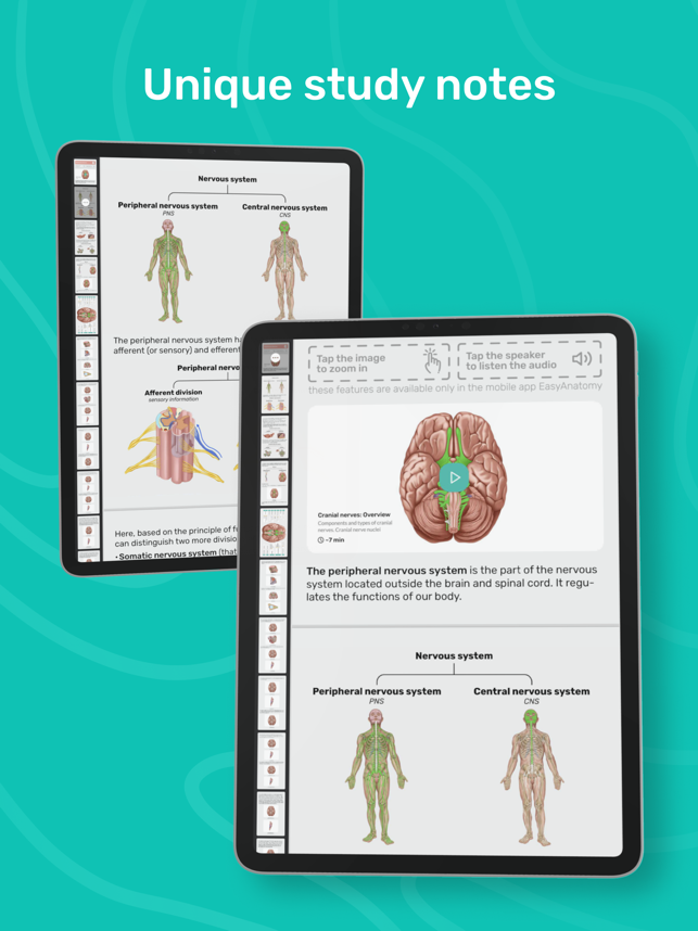 With the Easy Anatomy mobile app, you're guaranteed to learn anatomy easier and faster.The app includes the following features:3D atlas:Discover a 3D atlas of the next level in our app.Our 3D atlas uses the most accurate and comprehensive 3D model of the human body. Each anatomical system is broken down into layers so that you can study the structure of the human body in as much detail as possible. We have focused on smooth operation and user-friendly interface.Over 10,000 Flashcards:Our team of illustrators has done a tremendous job drawing all the human anatomical systems. The app contains over 10,000 flashcards with illustrations that can be used for quick and effective memorization of anatomy. You can take various flashcard tests to check your knowledge.Study notes:Our team of experts has written over 500 comprehensive notes. They present information in a unique way using clear diagrams, mind maps, and notes without unnecessary details and academic jargon.Videos:Engaging, conci