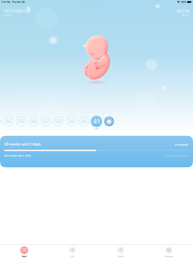My Pregnancy는 임신 주수 계산기입니다. 저희 앱은 당신의 임신 과정을 도울 것입니다. 신체 변화에 대해 인지하시고 아이의 성장 과정을 알아보십시오.저희 앱은 완전히 무료이며 광고를 포함하고 있지 않습니다.이 앱에 포함되어 있는 사항:- 주별 조언- 태아 성장 및 산모의 신체 변화에 대한 유용한 정보- 주별 태아 측정 및 이미지- 3개월마다 해야할 일 목록- 병원 입 퇴원 및 출산 후 관리에 필요한 사항- 체중의 증가를 확인할 수 있는 체중 모니터링- 태동 측정기- 진통 계산기- 기타 더 많은 기능들저희는 젊은 엄마들을 위해 사랑으로 이 앱을 만들었습니다.본 어플리케이션은 의료용이 아니며 의료 상담을 대신하지 않습니다.문의 사항이나 요청 사항이 있으시면 neumandev@gmail.com로 보내주세요. 저희는 이 어플을 개선하기 위한 귀하의 의견을 기다리고 있습니다.