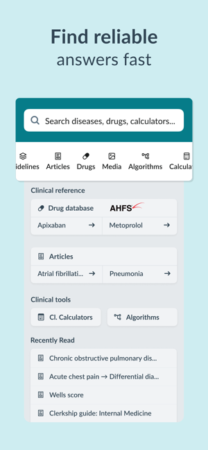 Your study and clinical companion. Get fast, reliable answers to clinical questions while studying, preparing for exams, or managing patients. IMPRESS YOUR ATTENDING & PROVIDE EXCELLENT PATIENT CARE WITH AMBOSS- Find the answers you need with the AMBOSS Knowledge app. It works offline so you can use it in the hospital and on the go. - Interpret key clinical findings on diagnostic images with image overlays. - Stay on top of every patient with evidence-based patient-care tools, such as diagnostic flowcharts, acute management checklists, drug dosing, clinical calculators, warning signs, and more.- Make quick decisions confidently, so you can spend more time with your patients.ACE YOUR MEDICAL SCHOOL EXAMS - Be prepared for every exam (in-house, USMLE® Step, or NBME® Shelf exams) with expertly-created high-yield content that covers the entire USMLE® content outline. - Connect your Anki flashcards to the AMBOSS library and remember everything you learn. You’ll get pop-up explanations o