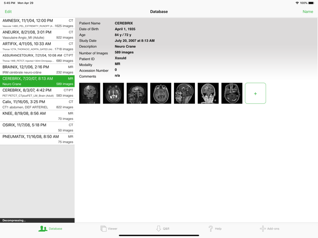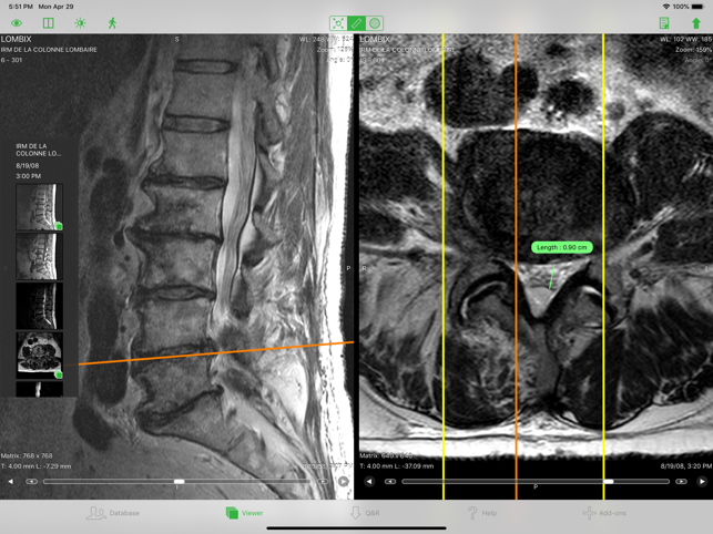 OsiriX HD is a full DICOM image viewer for iOS (DICOM Files & DICOM Network protocol support). AWARDS- Aunt Minnie's 2013 - "Best Radiology Mobile App” - Mobie Awards 2009: Winner - Best Medical App - RSNA 2008: Excellence in Design - RSNA 2008: Certificate of Merit "OsiriX HD" is a DICOM software for iOS: DICOM is the digital standard for storing and transferring medical images. OsiriX HD allows downloading and manipulating series of images directly on your iOS device. OsiriX HD is capable of displaying images from all imaging modalities (ultrasound, CT scanner, MRI, PET, etc.) in their native standard DICOM format used by the medical/scientific industry. OsiriX HD is a fully DICOM-compliant listener that can receive images from any DICOM imaging device through WiFi/3G networks. It supports these DICOM Network protocols: C-STORE SCP, C-MOVE SCU, C-FIND SCU, C-GET SCU, WADO, DICOMweb.This iOS app is designed to work seamlessly with any DICOM compatible software,