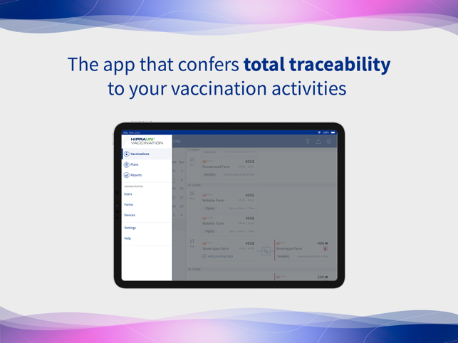 HIPRAlink® Vaccination 앱은 Hipra Medical Devices (Hipradermic®, Hipraspray® 또는 Hipraject®)로 수행되는 모든 예방 접종 세션에 대한 추적 성 서비스를 제공합니다.HIPRAlink® Vaccination 앱을 사용하면 다음을 수행 할 수 있습니다.- 달력에 미리 알림을 만들고 예방 접종 계획을 설정하여 향후 예방 접종 세션을 계획하십시오.- 예방 접종 프로세스 제어 : 각 예방 접종 세션에 대해 자동으로 적용되는 백신의 이름, 백신 배치, 사용 된 바이알의 만료일, 초기 – 예방 접종 완료 시간 및 속도, 장치, 사용 등이 있습니다.- 진화 그래프, 예방 접종 속도 및 다양한 필터 덕분에 성과를 분석하십시오.- 예방 접종 세션 인증 : HIPRA 의료 기기와의 ioT 또는 Bluetooth 연결 덕분에 예방 접종 데이터가 HIPRAlink에 자동으로 업로드됩니다. 따라서 HIPRAlink의 예방 접종 데이터는 완전히 신뢰할 수 있으며 편집하거나 인적 오류를 포함 할 수 없습니다.HIPRAlink® 예방 접종은 가금류 및 돼지 예방 접종에 사용할 수 있습니다.