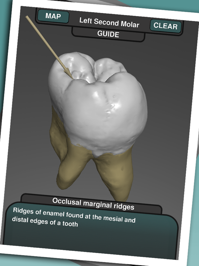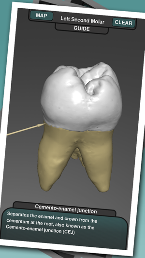 This groundbreaking app uses high resolution micro-CT scan data of real teeth. The data has been collected and processed by two university academics, who used 3D reconstruction techniques to allow the external and internal structures of the teeth to be explored in 3D in great detail. The app also contains a guide to the morphology and features of the teeth, with 3D demonstrations of how they relate to the tooth in question. A major advantage of using real teeth is that many show interesting and unusual features, which would be seen on dental patients. These can be explored and are explained through an interactive guide.