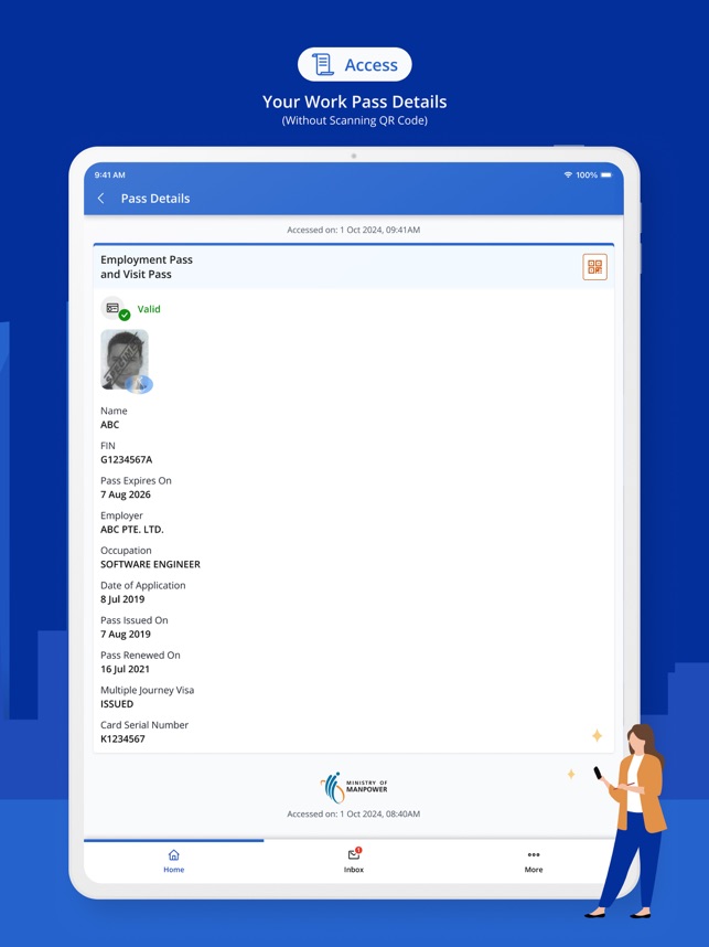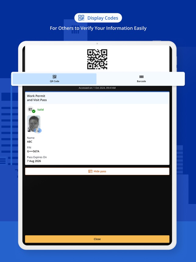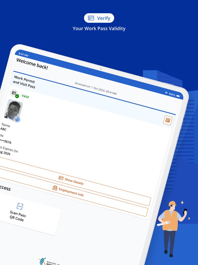 Worried about fake passes?Don’t be, just use SGWorkPass! It is free and allows you to check the validity of work passes, Dependant’s Passes and Long-Term Visit Passes issued by the Singapore Ministry of Manpower (MOM).***Employers and their foreign employees can enjoy these features: • Check pass validity and employment details instantlyNeed to urgently check the validity of a pass? Simply scan the QR code on the pass card to view the latest details. Work Permit holders (including helpers) can also check their latest salary details.• Stay connected with MOM and receive important messagesAfraid of missing out on important messages that may affect you? Now you can receive important notifications from MOM instantly. • Enjoy the convenience of a digital work passFor quick and secured access to work pass details, foreign employees with Singpass can use SGWorkPass to set up their digital work pass. Having a digital work pass allows you to view work pass details without having to scan the QR