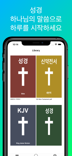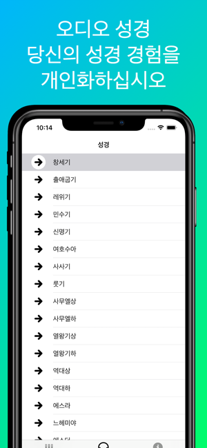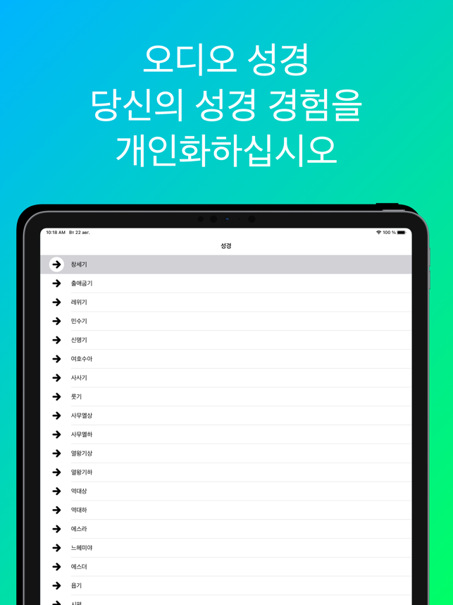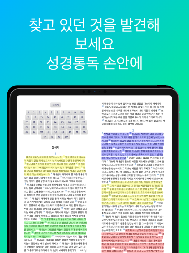 성경은 하나님의 말씀입니다성경은 진리의 말씀입니다성경은 구원의 말씀입니다성경 통해 삶 속에 스며드는 하나님의 말씀을 경험해 보세요. 아이폰 어디서든 사용이 가능합니다. 오프라인 성경 - 네트워크 연결 없이 성경을 읽을 수 있습니다. 기억하고 써두고 싶은 구절들에 밑줄을 그으실 수 있고, 노트작성도 가능합니다.성경 낭독 오디오. 구약, 신약 성경 전권의 오디오가 탑재되어 있어 어디서든 편리하게 성경을 들을 수 있습니다.크리스천을 위한 팟캐스트를 찾고 계시나요? 내게 필요한 내용의 팟캐스트를 한 곳에서 검색하고 들어보세요. 성경을 쉽고 재미있게 제대로 공부할 수 있는 팟캐스트.지금 설치해 보십시오. 귀하의 피드백과 개선을 위한 제안을 기다리고 있습니다. 지원해 주셔서 감사합니다. SUBSCRIPTIONS:-Your subscription will grant you unlimited access to all content for the duration of your subscription.-Payment will be charged to iTunes Account at confirmation of purchase -Subscription automatically renews unless auto-renew is turned off at least 24-hours before the end of the current period -Account will be charged for renewal within 24-hours prior to the end of the current period, and identify the cost of the renewal -Subscriptions may be managed by the user and auto-renewal may be turned off by going to the user's Account Settings after purchase -Any unused portion of a free trial peri