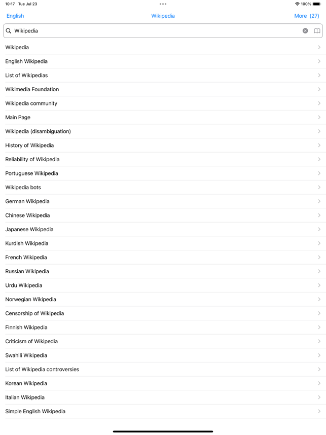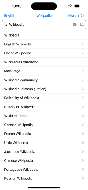 This is an application that searches and displays the full text of Wikipedia and its sister projects by language. This makes it easier to find what you want to know even if the keywords are ambiguous. In addition, while the web only displays one article at a time, this app displays multiple articles, providing a different experience from the web. Currently, you can search Wikipedia, Wiktionary, Wikisource, Wikinews, Wikibooks, and Wikiquote. A single search will list one screen at a time. You can also add more results one screen at a time with more searches. If you search without keywords, a random list is displayed for one screen. Articles can be bookmarked, and the search history can be viewed up to the latest 50 articles.