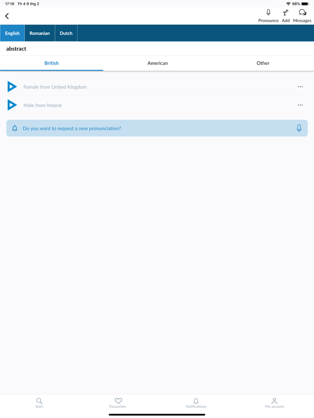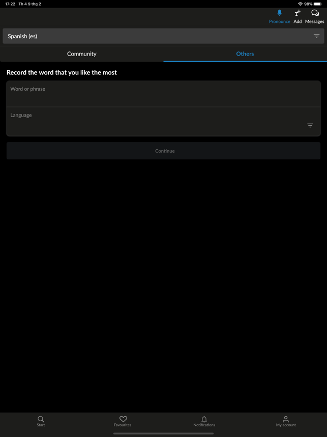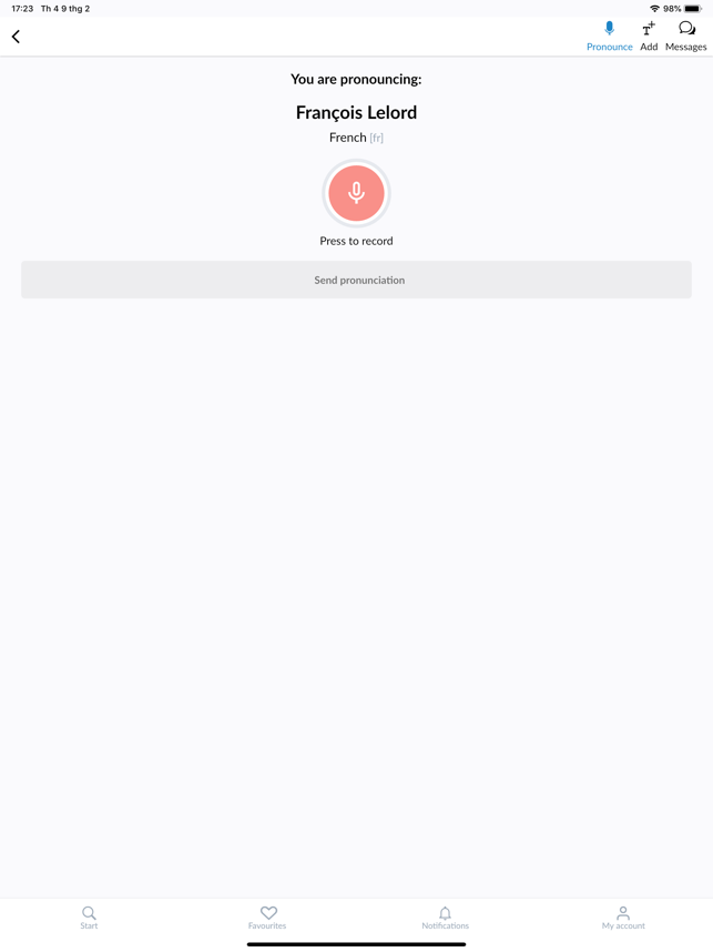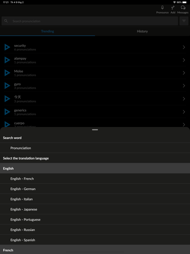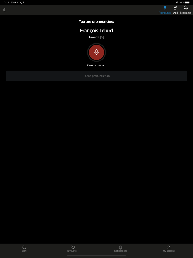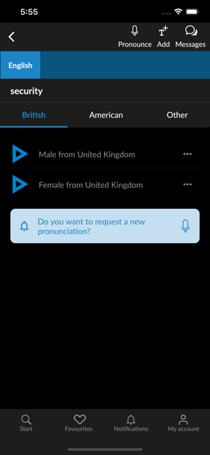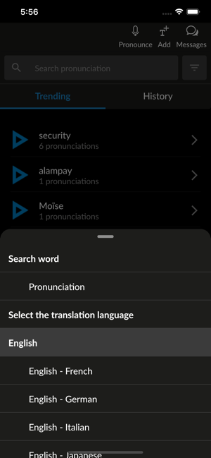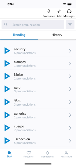 Improve your pronunciation with Forvo! Forvo Pronunciation App lets you listen, request and record pronunciations in more than 450 languages.With Forvo, you can search for words and listen to pronunciations recorded by authentic native speakers of the language you require. And it's not just the world's most spoken languages such as English, Spanish, Chinese, Arabic, Russian, French, German, Japa+nese, or Italian, you can also search for words in Kabyle, Bashkir, Tamil and many, many others.Features:* Search for words and listen to pronunciations from native speakers.* English pronunciations, French pronunciations, German pronunciations, Chinese pronunciations, Spanish pronunciations and hundreds more.* More than 7 million pronunciations available.* Compare different accents for the same word in the same language.* Listen to male or female voices.* Keep track of your recently listened pronunciations.* Works with your forvo.com account.* Record pronunciations in your native langu