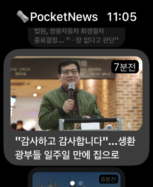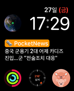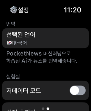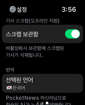 애플워치에서 만나는 가장 간편한 뉴스 앱 'Pocket News'아이폰은 집에 두고 운동을 하거나 대중교통에서 이동하는 잠시심심한 시간을 달래줄 유익한 뉴스 기사를 애플워치에서 만나보세요 !1. 사용자 맞춤 글자 사이즈 조절사람마다 모두 다르니까.작은 애플워치 화면 속 최적의 가독성을 위해 사용자가 직접 글자 사이즈 조절이 가능합니다![앱 > 설정 > 인터페이스]2. 스크랩 및 공유하기기사를 워치(오프라인)에 저장하거나 외부로 공유할 수 있습니다.[기사본문 > 가장하단]3. 뉴스 번역 기능 제공맞춤형 머신러닝으로 학습된 Ai가 뉴스 기사/제목을 번역해줍니다.학습을 위한 사람이나 외국인, 모두 PocketNews에서 만나보세요![앱 > 설정 > 번역]4. 저데이터 모드 네트워크 데이터를 적게 사용하여 데이터를 절약하고 이미지 로딩 속도를 향상시킵니다.[앱 > 설정 > 저데이터 모드]5. 기사 메인 이미지 상세보기실시간 기사, 스크랩된 기사 모두 이미지를 눌러 상세히 볼 수 있습니다.6. 차별없는 지원애플워치의 모델 상관없이 'watchOS9' 이상이라면 셀룰러, GPS 모두 지원합니다!네트워크가 없는 환경에서도 이전 데이터를 로드시켜 기사를 읽을 수 있습니다!7. 컴플리케이션 지원메인 워치페이스에서도 기사 헤드라인을 볼 수 있게!다양한 워치페이스에 자연스럽게 스며든 컴플리케이션 위젯을 추가해보세요!