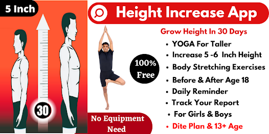 Get taller with the ultimate Height Increase App Height Increase Exercise is your goto app for achieving your desired height with proven exercises customized meal plans and expert guidance Unlock your height potential with personalized exercise routines and diet plans designed to help you grow taller naturally Whether you39re a teen an adult or looking to maximize your height potential this app provides all the tools you need to start your journey to a taller you today Key Features Height Increase Exercises A comprehensive library of exercises designed to increase height including stretching and yoga 1 Week Height Increase Exercise Follow a dedicated 1week exercise plan aimed at maximizing your height Height Increase Exercise for Girls Tailored exercises designed specifically for girls to help them grow taller Height Increase Exercise at Home Perform effective heightincreasing exercises right at home Stretching Height Increase Exercise Incorporate stretching into your routine to elongate your spine and improve posture Height Increase Exercise for Boys Tailored exercise plans for boys looking to maximize their growth potential Fast Height Increase Exercise Speed up your growth with exercises designed for quick results Height Increase Exercise Before 18 Maximize your growth potential before turning 18 with targeted exercises Height Increase Exercise After 18 for Boys Even after 18 boys can grow taller with the right exercises and routines Height Increase Exercise in Gym Utilize gym equipment to enhance your height growth routine Height Gain Height Increase Exercise Boost your height gain potential with a combination of stretching and strengthening exercises Get Taller with Effective Exercises Achieve your desired height with daily exercise routines tailored to your needs Why Height Increase Exercise Height Increase Exercise combines sciencebacked methods personalized routines and easytofollow instructions making it the ultimate app for anyone looking to grow taller Whether you39re just starting or have been trying for years this app provides all the tools and knowledge you need to achieve your goals Ready Height Increase Exercise today and start your journey to a taller you Our app offers functionalities that relate to the following categories Activity and Fitness Nutrition and Weight Management
