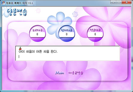 한글 단문과 영문 단문 연습을 할 수 있습니다