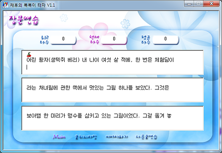 한글 장문과 영문 장문 연습을 할 수 있습니다