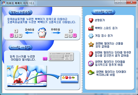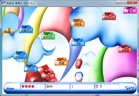 귀여운 뽁뽁이 캐릭터가 나오는 타자게임을 할 수 있습니다