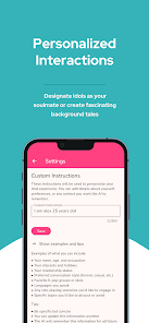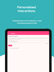 나만의 스토리 만들기 AI의 메모리를 맞춤 설정하여 독창적인 스토리를 만들어 보세요 아이돌을 소울메이트로 지정하거나 다양한 배경 이야기를 창작해 보세요 상상력의 한계는 없습니다