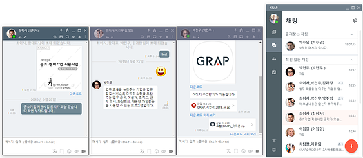 GRAP 메신저는 11 대화 단체 대화 화상회의 대용량 파일 전송 등 업무중 필요한 기능만 제공합니다 또한 실수로 올린 채팅을 회수할 수 있는 메시지 회수기능도 제공하여 업무중 커뮤니케이션 실수를 줄일 수 있습니다