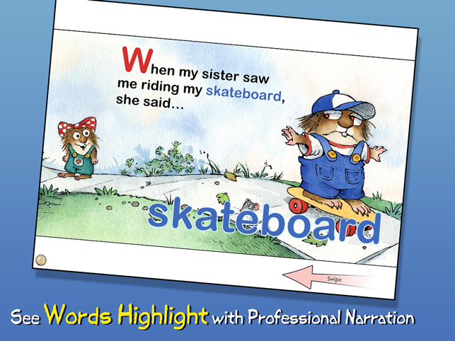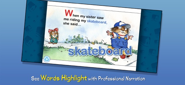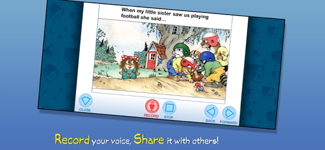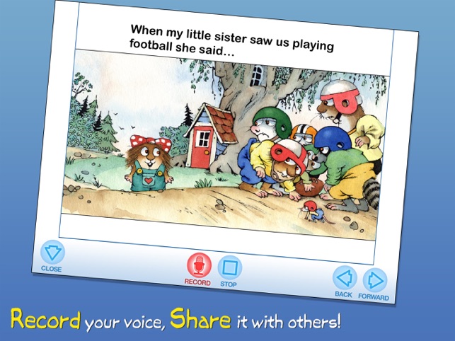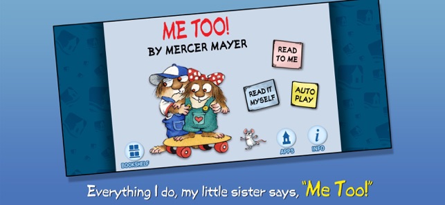 Join Little Critter in this interactive book app as his little sister tags along wherever he goes, saying "Me Too!" to everything from playing football with his friends to eating the last piece of cake! Explore pictures, learn new vocabulary, and personalize the story with your own narration. Jump inside to find out how Little Critter learn that sharing with your siblings is good because sometimes they share back!Explore the Story:- ENCOURAGE literacy skills with highlighted narration- LEARN new vocabulary with tappable words and pictures- RECORD your own narration & share it with others- SELECT a scene with easy-to-use navigation- KEEP kids in the story with parental controls Designed for children ages 2-5Enjoy interactivity, narration, music, sound and educational features that simply are not possible in the print version. Plus, your dog will never chew the pages. You will help support a more sustainable world. And you will always have your entire library with you in yo