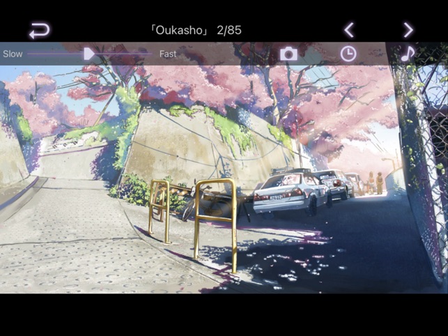 5 Centimeters per Second Film Art Book brings you the beautiful art of the acclaimed film “5 Centimeters per Second.”This series of three short animations directed by Makoto Shinkai in 2007 has been capturing people’s heart worldwide with its gorgeous picture and touching story. Now it’s on iPhone, iPod touch and iPad!*This app features only Chapter 1 Oukasho-------------------------------------------------------------COLLECTION OF SELECTED SCENESThe pictures are arranged in order of the story of Oukasho. View your favorite scene as you like or by slideshow, play/pause and speed controllable, which feels like actually watching the film! You can save the pictures and decorate your devices as wallpapers.BGM FROM THE FILMThe app contains two songs from Oukasho. Enjoy the pictures with Tenmon’s wonderful works that sets the mood, or also with music in your own library.CLOCK MODEYou can set the movable clock in three different fonts on the screen. Make it one of your interior.