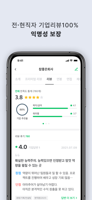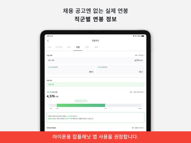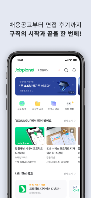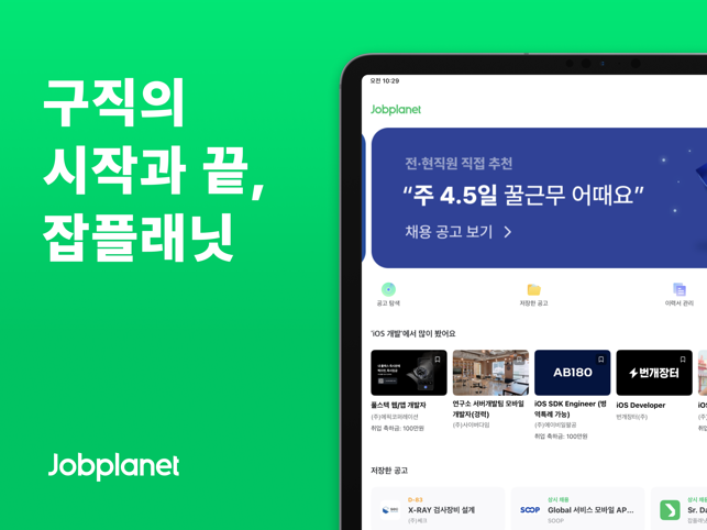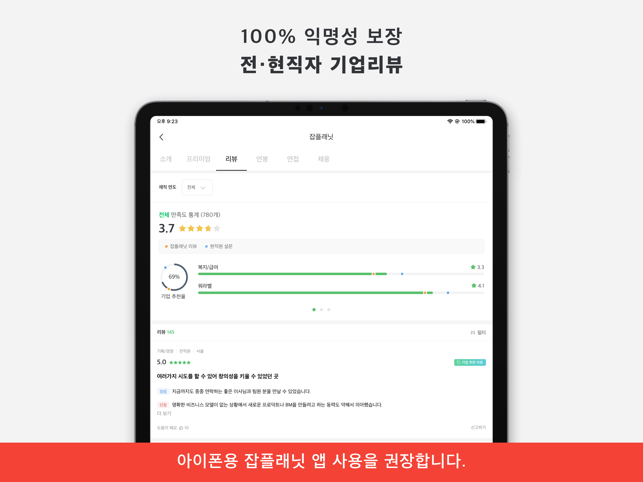 *** 매월 300만명이 이용하는 검증된 취업정보사이트 ‘잡플래닛'을 모바일로! *** *** 40만개가 넘는 기업의 연봉, 면접후기, 기업리뷰를 한 눈에 볼 수 있는 국내 유일의 앱 *** *** 매주 업데이트 되는 채용 전문가의 취업/이직 동영상 강좌 ***잡플래닛(Jobplanet)은 채용정보, 기업리뷰, 연봉, 면접 후기, 이직·취업 정보까지 제공하는 ‘직장인 취준생 필수앱' 입니다.이제 채용 사이트에서 취업 정보 보고, 기업 정보를 따로 찾아볼 필요 없어요.잡플래닛에서 실제 직원들의 솔직한 리뷰와 연봉, 복지를 확인하고 마음에 드는 회사에 바로 지원하면 끝!취업/이직 준비가 어렵다면? 프리미엄 멤버십에서만 볼 수 있는 전문가의 커리어 강좌로 합격률을 120% 높여보세요.[그냥 취업정보 사이트와 잡플래닛은 뭐가 다른가요?] 철저한 익명이 보장되는 100% 솔직 리뷰 – 작성자와 리뷰의 연결을 끊어 안심할 수 있습니다. 공고로는 알 수 없던 실제 연봉 정보 – 실제 직원들이 말하는 연봉과 복지는 어떤 지 확인해보세요. 솔직한 면접 후기 – 실제 면접에서 나왔던 질문은 물론 합격자의 답변도 알 수 있습니다. 맞춤형 추천 채용 공고 – 원하는 직무와 경력만 알려주면 딱 맞는 기업의 공고를 보여드립니다. [잡플래닛 프리미엄 멤버십은 뭐가 좋나요?] 취업의 모든 것을 담은 200+개의 동영상 강좌와 100+개 리포트 무제한 열람! 리뷰만으로는 알 수 없는 기업 분석 자료와 타 기업과의 비교 데이터까지 한 눈에 기능은 프리미엄, 가격은 합리적! 지금 구매하면 최대 70% 할인혜택까지 ◆ 멤버십 이용권 안내*프리미엄- 기간 이용권 (1개월권, 3개월권, 6개월권) : 구매한 기간 동안 스마트폰, PC 에서 이직·취업 강좌, 기업리뷰, 연봉정보, 면접후기, 복지정보의 콘텐츠를 이용할 수 있습니다.- 정기 이용권(정기 결제/1개월) : 매달 자동으로 결제되며 구독 해지 전까지 스마트폰, PC에서 이직·취업 강좌, 기업리뷰, 연봉정보, 면접후기, 복지정