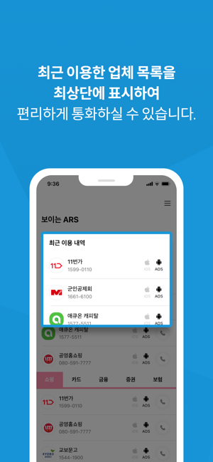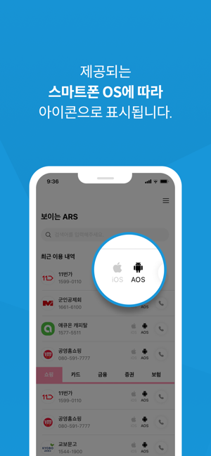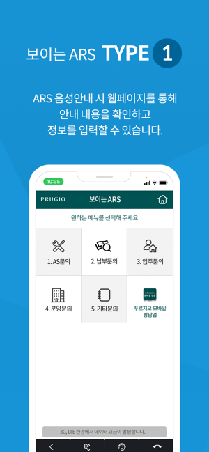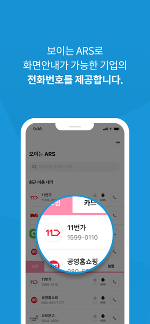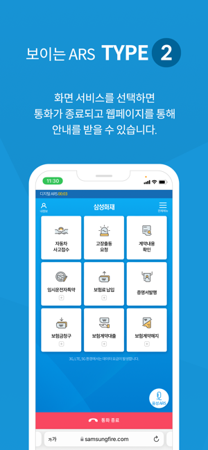 보이는 ARS는 원하는 기업의 통화 연결을 누르면 콜센터에서 제공하는 서비스를 스마트폰 화면을 통해 보다 쉽고 빠르게 이용하실 수 있습니다.보이는 ARS 서비스는 아래와 같이 다양한 형태로 서비스를 제공합니다.[서비스 Type 1]ARS 음성안내 시 팝업되는 웹페이지를 통해 ARS 안내내용을 화면으로 바로 확인하고 화면에 직접 정보를 입력할 수 있습니다.[서비스 Type 2]ARS 옵션에 따라 화면 서비스를 선택하면 통화가 종료되고 웹페이지를 통해 화면을 통한 셀프서비스를 이용하실 수 있습니다.