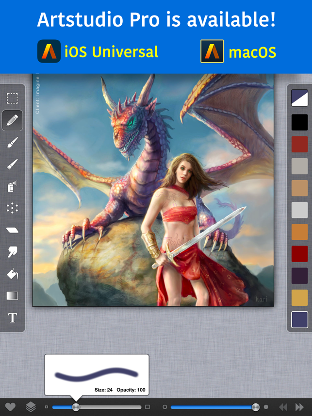 *** This is the LEGACY version. ARTSTUDIO PRO, the successor to this app, is available now with many new features and improvements. Find it by searching for “Artstudio Pro” on the Mac/iOS App Store.ArtStudio is the most comprehensive, sketching, painting and photo editing tool in the App Store. Completely re-designed from the ground up the new ArtStudio features a beautiful new user interface and a powerful new graphics engine to make creating works of art faster, easier, and more fun! Using advanced drawing algorithms this is the fastest and most precise version of ArtStudio to date.See the videos: General: http://www.youtube.com/watch?v=6sP1x1kgtgUPhoto features: http://www.youtube.com/watch?v=1SfPXLbKMz8Follow us on twitter: http://twitter.com/lucky_clanFollow us on facebook: https://www.facebook.com/LuckyClanAppsGallery:http://flickr.com/groups/artstudioimages/appsmile.com: 5/5"This is what PhotoShop Mobile wishes it had been."FEATURES:- flexible canvas size, max: 2048x15