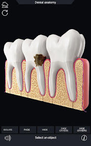 Dental  Anatomy app gives users an in depth look at the  human Teeth allowing them to select  xray view hide and show individual Kidney Parts as well as  draw or white on screen and share screenshots Audio pronunciation for all anatomical terms and more