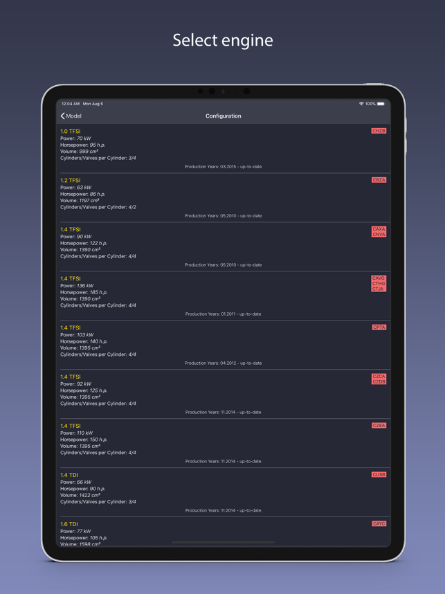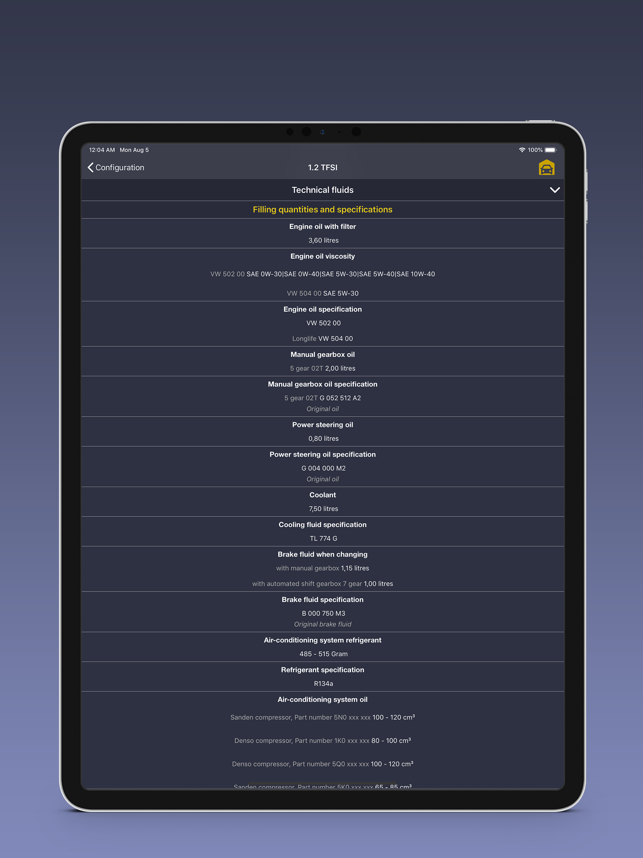 The application contains technical information that will help you in the repair and maintenance of your car.Data is divided into categories: general information, chassis, tightening torques of bolts and nuts, fuel system, brake system, lighting lamps, a replacement intervals and volumes of technical fluids.Technical data of repair, adjustments, volumes of fluids, service intervals, etc. - comply with the recommendations of the automaker and can’t be the same with your personal opinion, so it’s only for informational purposes.For work needed Internet access.Consumption traffic is little. After first loading the information that interests you data is cached, allowing you to view after it offline.Information is available for the following models:50 (86)80 Avant (8C, B4)80 (81, 85, B2)80 (89, 89Q, 8A, B3)80 (8C, B4)90 (81, 85, B2)90 (89, 89Q, 8A, B3)100 (44, 44Q, C3)100 Avant (4A, C4)100 (4A, C4)100 (44, 44Q, C3)200 Avant (44, 44Q)200 (44, 44Q)A1 (8X1, 8XF)A1 Sportback (8XA, 8XK)A2 (8Z0)A3