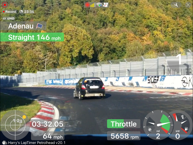 Harry's LapTimer is the advanced tool for car enthusiast. It records all types of sensor data provided by your iPhone/iPod/iPad (or external sensors), combines them, and makes them available to optimize your drive. Over time, you will get insights on your car and in your driving, not known before.LapTimer offers more than 1300 predefined tracks world wide. With its assistants, it is extremely easy to setup - just click your track and drive. It fully automates your lap timing using GPS, and presents the results to all kinds of media.You are not limited to track driving only. For example, you may define your home and working locations as a 'track', collect statistics on different ways chosen, and analyze / optimize the time used every day. Want to show your drive to your friends? LapTimer Petrolhead and above generates beautiful in car video recordings with all kinds of data overlaid, ready to be presented - e.g. on youtube. Even without video, recorded data can be analyzed u