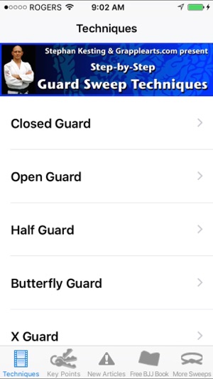 THE MOST EFFECTIVE BJJ GUARD SWEEPS FOR TRAINING, COMPETITION AND SELF DEFENCE.REVISED, UPDATED & EXPANDED FOR YOUR IPHONE, IPOD, AND IPAD - Step-by-step instructions for Guard Sweeps that get you from the bottom to the top starting in a wide variety of guard positions. Useable with and without the gi in Brazilian Jiu-jitsu, Submission Grappling, and MMA.Stephan Kesting is a Brazilian Jiu-Jitsu blackbelt, an instructor in Combat Submission Wrestling, and has over 30 years of martial arts experience. He operates Grapplearts.com, one of the most respected grappling sites on the web.In this app Stephan takes you through the most effective high percentage sweep techniques, starting from the closed guard, open guard, butterfly guard, etc and getting you to the top position where you can dominate a match. This app - Grapplearts Sweeps - includes: * 26 high percentage guard sweeps broken down using high quality video instruction into easy-to-follow steps* 6 detailed breakdowns and my