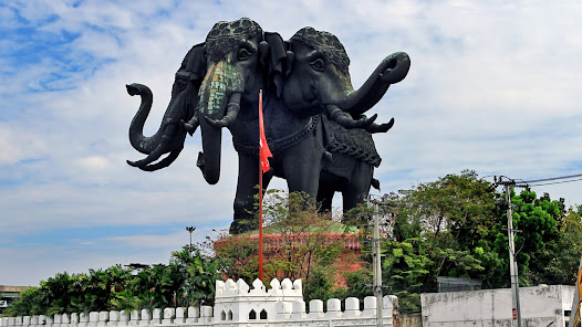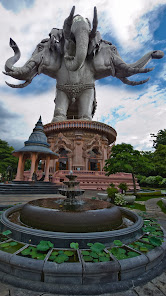 청동으로 만든 머리가 세 개 달린 거대한 코끼리는 무게 250톤 높이 29미터 길이 39미터 높이 15미터49피트 받침대에 서 있습니다 박물관 내부는 지하1층 대지2층 천국상층으로 구성된 힌두교의 우주를 모델로 했습니다 아래 2개 층은 받침대 내부에 있고 최상층은 코끼리 뱃속에 있습니다 2019년 기준 입장료는 400입니다