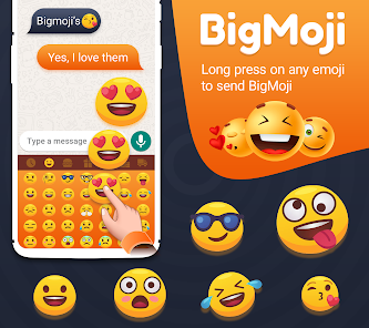 BigMoji Keyboard is a truly free fully customizable Allin1 keyboard which contains awesome content and tons of features with 5000 emojis cute stickers emoticons GIFs Cool fonts stylish themes on this emoji keyboard Bigmoji Keyboard is the most compatible face emoji keyboad for Android phones Additionally it helps you to spice up chats and provides thousands of cool keyboard themes for you to downloadYou can even add your own photos to the keyboard