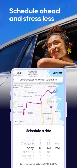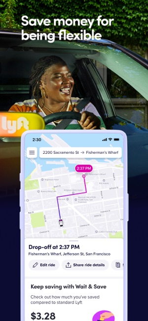 Get where you’re going with Lyft.Whether you’re catching a flight, going out for the night, commuting to the office, or running errands in a rush, the Lyft app offers you multiple ways to get there.EASY TO USEEnter your destination. See your route and ride cost up front. Choose Priority Pickup to get going quick. Boom. Done. SimpleCHOOSE YOUR WHEELSChoose from Wait & Save, Priority Pickup, Bikes & Scooters, Lyft XL, Lyft Lux, Transit, or even Rentals.AFFORDABLE RIDESOur Wait & Save option helps you get around for less. And you can find the fastest public transit routes, too.* Lyft ride types may vary by region. Check the app to see what is available in your city.—Prices vary based on market condition.By downloading the app, you agree to allow Lyft to collect your device's language settings.
