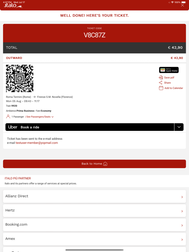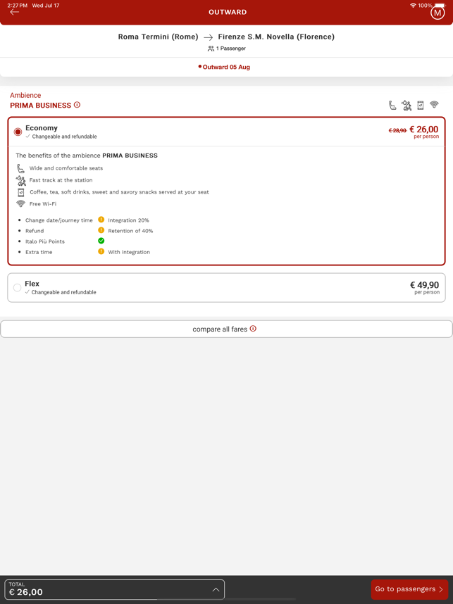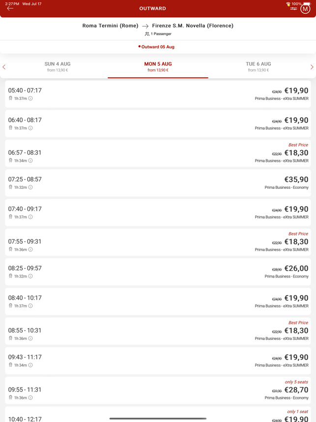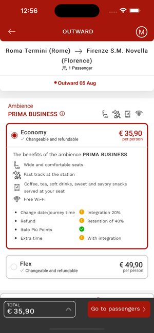Welcome to the Italo app - The Official Italian high-speed train, where you can book your tickets to travel all over Italy, always at the best prices and without booking fees. Purchase your tickets with Italo to travel at maximum speed between Italy's most captivating cities, such as Rome, Milan, Naples, Florence, Venice, as well as to over 1000 destinations nationwide thanks to bus and regional train connections. · Rome-Florence in only 1 hour and 30 minutes travel time. · Rome-Venice in only 3 hour and 50 minutes travel time. · Naples-Rome in only 1 hour and 10 minutes travel time. · Milan-Venice in only 2 hours and 30 minutes travel time. · Venice-Florence in only 2 hours travel time. · Florence-Milan in less than 2 hours. · Milan-Rome in less than 3 hours. Why should you download the Italo app? · No booking fees and always the most convenient prices available within the app. · Streamlined and faster purchase process to ob