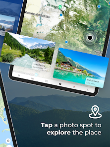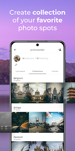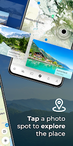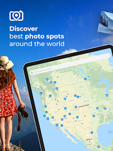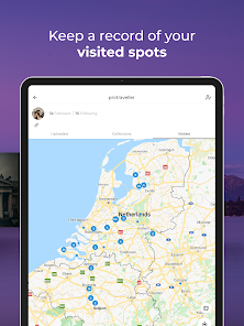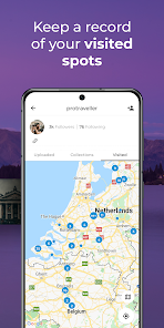 모든 사진 장소는 앱에 세계 지도에 표시되어 쉽게 시각화하고 탐색할 수 있습니다 지도상의 위치에 따라 여행을 계획할 수 있습니다