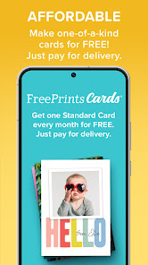 FreePrints Cards is a member of the growing FreePrints family of mobile apps each dedicated to designing personalised products quickly easily and affordably The popular original FreePrints app gives you 500 free 6x4 photo prints a year FreePrints Photobooks gives you a free photo book every month FreePrints Photo Tiles gives you free wall dcor every month And now FreePrints Cards takes the cost out of sending greetings by giving you a FREE Standard Card every month You pay only for delivery