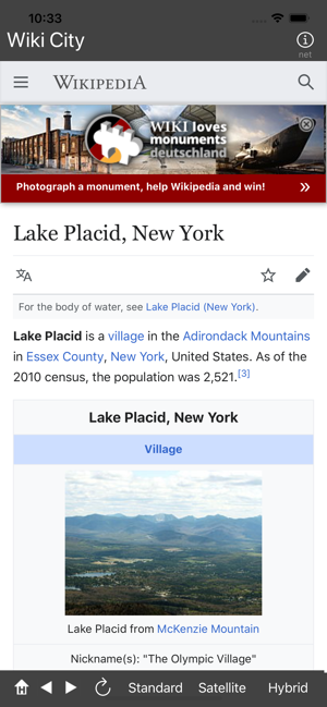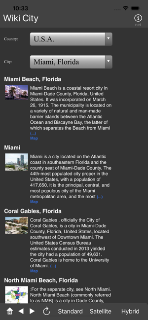 Wiki City shows you interesting information and landmarks from cities around the world. You can for example use for travel planning.Features:- Select Country and City- Search a CityShow:- Information from the city found in pictures and text- 12 entries pro city- Location on map with zoom function- For more information of each entry from Wikipedia- Cross-referencesRequirements:- Internet connection