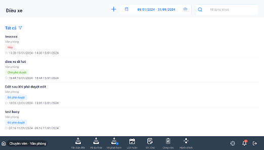 Cc tnh nng hnh chnh phng hp iu xe lch tun c pht trin h tr gii quyt cc tc nghip hnh chnh trong n v mt cch nhanh chng v tin li