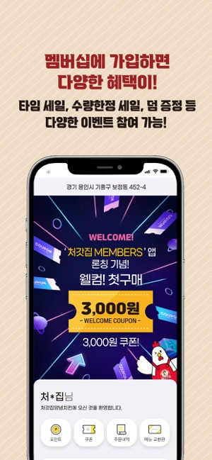 대한민국 양념치킨, 처갓집양념치킨의 공식 주문앱입니다.처갓집양념치킨 주문앱으로 편리한 주문과 동시에 특별한 혜택을 경험해 보세요.1) 편리한 주문 기능- 전국 처갓집양념치킨 배달/포장 주문 가능- 모바일 상품권 등록 및 결제 기능※ 온라인 주문 가능 시간- 매일 12시부터 23시까지(23시 이후 주문은 콜센터 또는 가맹점으로 문의)2) 멤버십 혜택- 가입 시 웰컴쿠폰 제공언제 어디서든 처갓집양념치킨 주문앱으로 쉽고, 빠르게 주문하세요.※ 고객센터 : 031-266-5970