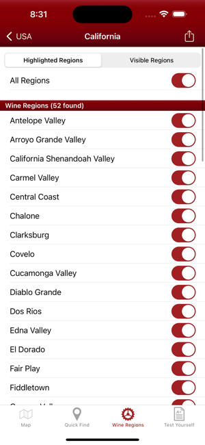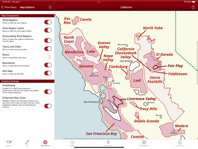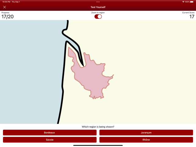 - Updated Napa County in California, to show the new Crystal Springs of Napa Valley AVA- Updated Washington in the USA, to show the new Beverly, Washington AVA- Improved the "Test Yourself" feature, allowing you to continue to the next question at your own pace. - Minor translation improve