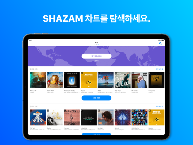 지금 들리는 노래의 제목이 궁금한가요? 주변이나 TikTok, Instagram, YouTube 같은 앱에서 재생 중인 음악이 무엇인지 확인해보세요. 라이브 공연, 노래 가사, 동영상 등을 발견하세요. 다운로드 횟수는 20억을 넘어 지금도 계속 증가하고 있습니다."Shazam은 마법처럼 느껴지는 앱입니다." - techradar.com"Shazam은 소중한 선물이죠... 음악 검색을 완전히 바꿔 놓았어요." - Pharrell Williams, GQ"Shazam 없이 어떻게 살았는지 모르겠어요." - Marshmello이런 점이 좋아요어떤 노래든 제목을 찾아냅니다. 기기가 오프라인일 때도 곡만 인식시켜 놓으면, 온라인 모드가 되었을 때 Shazam이 제목을 알려줍니다. 헤드폰 사용 중이나 멀티태스킹 중에도 사용 가능합니다.순식간에 노래 제목을 알아낼 수 있습니다! 제어 센터에 음악 인식을 추가하고 잠금 화면 또는 홈 화면 위젯을 활성화하세요.아티스트 인기도와 추천을 기반으로 혹은 검색을 통해 라이브 음악 이벤트를 발견하세요.그 외에도 좋은 점노래를 듣고 Apple Music 플레이리스트에 추가하세요.들리는 노래에 맞춰 제공되는 가사를 따라 부를 수 있습니다.Apple Music 또는 YouTube에서 뮤직비디오를 시청할 수 있습니다.Shazam 차트에서 여러분의 국가나 도시의 인기곡을 찾아보세요.어떤 노래든 Apple Music, Spotify 및 Deezer에서 바로 재생하세요.수천 개의 별점 5점 리뷰"이럴 수가... 정말 엄청난 앱이에요... Shazam 버튼만 누르면 금방 노래 제목을 찾아내요.""정말 마음에 쏙 드는 새로운 음악을 찾아주니 참 유용해요.""진짜 거짓말 안 하고 1초 만에 노래를 찾아요...""사랑해요, Shazam... 덕분에 모르는 노래들로 멋진 재생 목록을 뚝딱 만들어 낼 수 있어요.""내 일상의 일