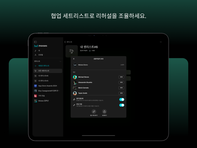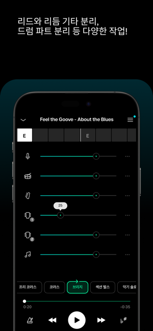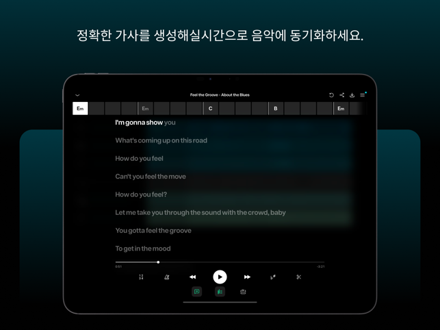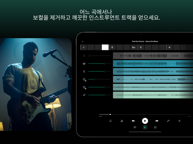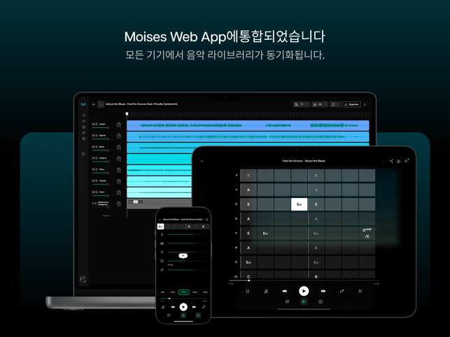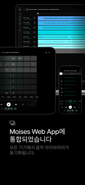 •어떤 곡이든 보컬과 악기를 분리하세요•AI 코드 감지•AI 생성 메트로놈/클릭 트랙•피지 체인저•곡 리믹스•스피드 체인저•카운트인•트림뮤지션을 위한 세계 1위 보컬 제거기입니다. AI를 사용해 어떤 곡에서나 보컬 및 악기 소리를 추출하거나 제거하고, 좋아하는 음악을 원하는 키에서 원하는 속도로 재생할 수 있습니다. 기타, 드럼, 피아노, 보컬, 베이스 백킹 트랙을 생성에 최고인 스템 플레이어입니다.완벽한 피치의 기타 타브 악보, 스마트 메트로놈, AI 믹서로 오디오 코드와 스템을 마스터하세요. 스템 및 보컬 제거기를 위한 최고의 AI 구동 음악 도구를 받고 오늘 밴드에 가입해 보세요.음악을 만드는 사람, 기타 연주자, 오디오 덕후, 매일 음악 활동을 하는 뮤지션을 위한 Pro 기능:- AI 스템 분리: 보컬, 드럼, 기타, 베이스, 피아노, 현악기, 기타 악기의 소리를 어느 곡에서나 쉽게 분리할 수 있습니다. Moises는 사용자를 위한 보컬 제거기 또는 백킹 트랙 메이커입니다.- 스마트 메트로놈: 어떤 곡의 박자와도 싱크가 맞는 클릭 트랙을 즉시 생성합니다.- AI 가사 전사: 음악을 손쉽게 텍스트로 변환합니다. 영어, 스페인어, 포르투갈어, 프랑스어, 이탈리아어로 된 오디오를 지원합니다. 음악 속 가사를 전사하여 반주기 트랙 메이커로 최고입니다.- AI 코드 감지: 곡의 마디와 박자를 따라 가고, 동기화된 기타 타브 악보 및 코드를 즉시 연주해 보세요. 코드 감지는 초급, 중급, 고급으로 제공됩니다.- 음성 속도 변환기: 어려운 부분의 속도를 클릭 한 번으로 늦추거나 올려 쉽게 만들어 보세요. Moises는 자동으로 BPM을 감지하고 표시합니다.- 피치 변환기: 오디오 키를 쉽게 제어하고 변경합니다. 보컬 범위나 튜닝된 악기 소리에 맞게 피치를 변환할 수 있어 반주기 연습에 좋습니다.- AI 키 감지: 곡의 키를 감지 및 변경하고 코드를 전체 12키로 즉시 조옮김할 수 있습니다.- 협업 세트리스트: 공동작업자를 초대하고 곡의 요소를 미세하게 조정하며 모든