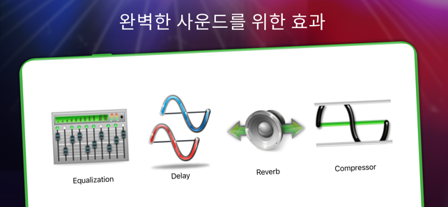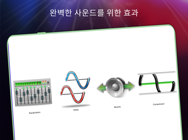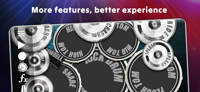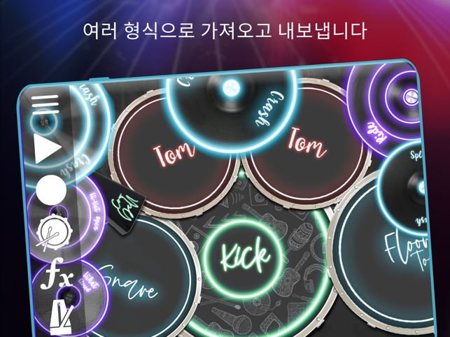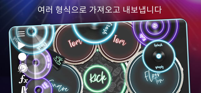 Batalsoft의 Drum Solo Studio는 뛰어난 드럼 연주 경험을 선사하여 즐겁게 노는 데 도움이 되고 숙련된 드러머가 될 수 있습니다. 앱의 멀티터치 어쿠스틱 드럼 키트 시뮬레이터를 사용하면 iPhone 또는 iPad에서 손가락으로 드럼을 연주할 수 있습니다. 이제 E-Drums 및 외부 MIDI 컨트롤러 지원 기능을 갖춘 이 앱은 무료이며 빠르고 정확한 응답으로 스튜디오 품질의 사운드 뱅크를 제공합니다. 드럼 연주 실력을 한 단계 끌어올리세요!여기에는 MIDI 지원, 세션 녹음, 작곡을 다른 형식으로 내보내기와 같은 많은 놀라운 기능이 포함되어 있습니다. 이 강력한 도구를 사용하여 자신만의 고유한 드럼 연주 경험을 만들 수 있습니다.뛰어난 경험을 위해 헤드셋으로 음악을 크게 재생하십시오. Drum Solo Studio는 초보자, 타악기 연주자, 전문 음악가, 드러머 등 드럼을 사랑하는 모든 사람을 위해 설계되었습니다.주요 고급 기능은 다음과 같습니다.- E-Drums 및 외부 MIDI 컨트롤러 지원- 6개의 완벽한 오디오 키트: Standard, Heavy Metal, Modern Rock, Jazz, Pop 및 Synthesizer.- 세션을 녹음하고 나중에 실제 드럼 세트 기계처럼 자신의 루프에서 연주할 수 있습니다.- 리듬 기술에 따라 모든 스타일의 드럼을 연주하는 방법을 배울 수 있는 많은 수의 독점 데모 레슨. 록, 블루스, 디스코, 덥스텝, 재즈, 레게톤, 헤비메탈, 팝의 루프를 찾을 수 있습니다.- 서로 다른 스타일의 미리 녹음된 반주 트랙 위에서 즉흥 연주를 시작하여 대화식 드럼 연주 경험을 만듭니다.- 이퀄라이제이션, 리버브, 압축 및 지연과 같은 실시간 효과를 적용하여 라이브 드럼 사운드를 미세 조정하고 원하는 분위기를 만들 수 있습니다.- 저장소에서 좋아하는 MIDI 노래의 드럼 트랙 가져오기- 루프를 MP3, OGG, MIDI 및 PCM WAV로 내보내고 파일을 친구와 공유Drum Solo Studio에는 드럼 연주 경험을