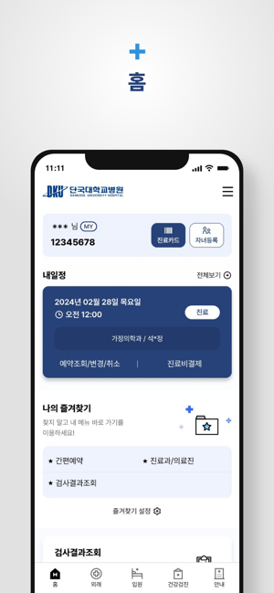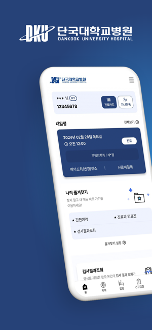 단국대학교병원을 편리하게 이용할 수 있는 모바일 어플리케이션입니다설치하시면 단국대학교병원에서 아래와 같은 다양한 서비스를 받으실 수 있습니다.- 내 일정 병원에서의 진료일정을 한번에 보실 수 있습니다. 오늘 일정 및 미래의 일정을 조회할 수 있어요.- 진료예약 모바일앱에서 진료예약을 간편하게 할 수 있습니다. 예약내역도 조회할 수 있어요.- 진료대기순서 진료대기순서를 어디에서든 확인할 수 있습니다. 진료실 앞이 아니라 커피숍에서 기다리셔도 돼요.- 진료내역 병원에서 진료 본 내역을 간편하게 확인할 수 있습니다. 외래, 입원 모두 확인 가능해요.- 처방약조회 병원에서 처방 받은 약을 한눈에 확인할 수 있습니다.# 환자경험과 관련한 서비스가 계속 추가될 예정입니다.