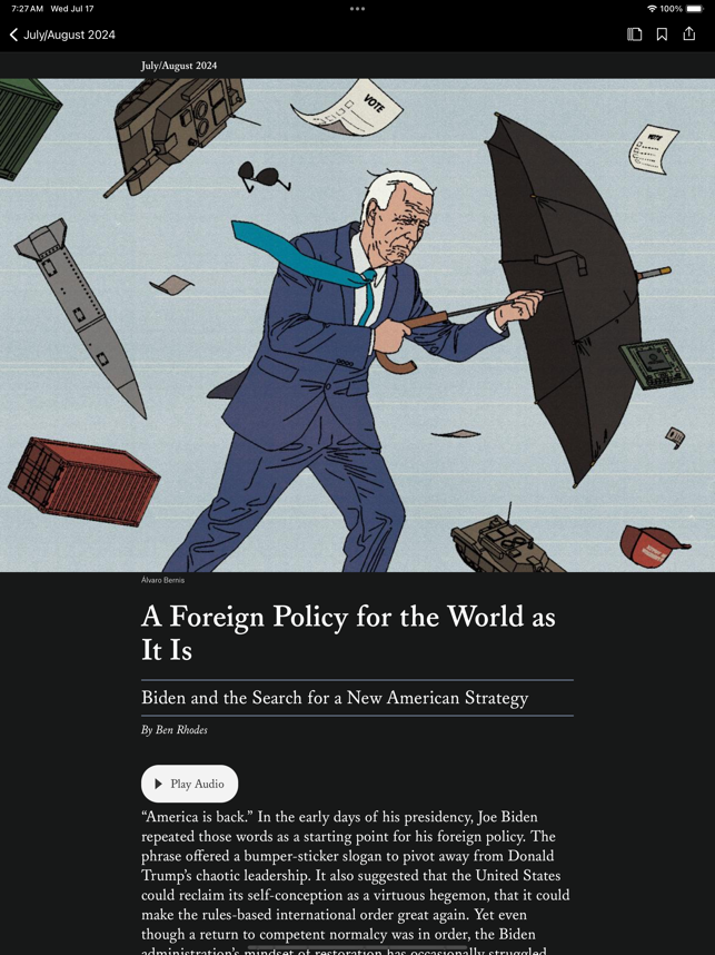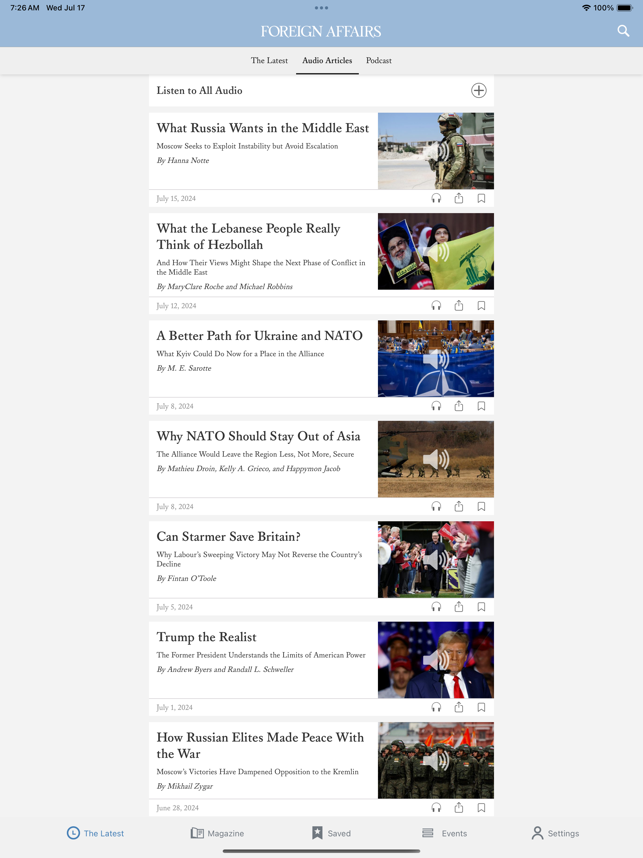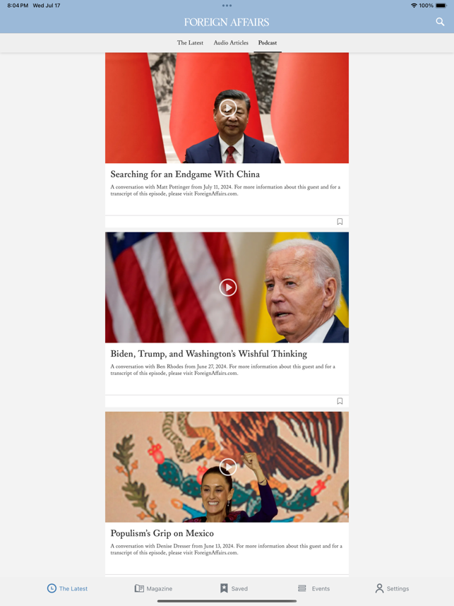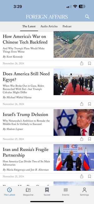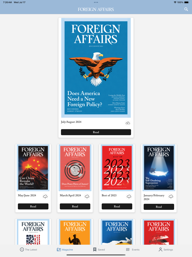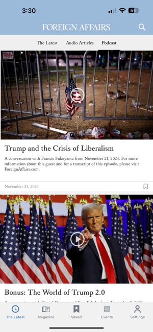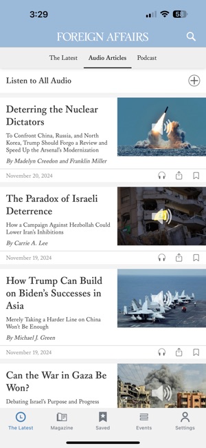 Get award-winning commentary on global news daily with the Foreign Affairs app. Download the Foreign Affairs app to stay up-to-date on the latest international news, commentary, and policy analysis from influential thinkers and world leaders. Foreign Affairs offers insightful articles, digital issues, podcast episodes, videos, and audio content on critical topics related to geopolitics, security, economics, science and technology, climate change, and more. Foreign Affairs has published globally renowned thinkers and world leaders over the past 100 years from around the world and across the political spectrum, including W. E. B. Du Bois, Eleanor Roosevelt, George Kennan, Madeleine Albright, Henry Kissinger, Nelson Mandela, Hillary Rodham Clinton, Barack Obama, Jill Lepore, Eric Schmidt, Samantha Power, Fareed Zakaria, and more. Get new, relevant articles on international topics of interest daily. Subscribers get additional access to digital magazine issues. Podcasts and event videos are