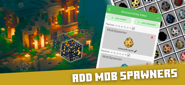 마인크래프트 1.20 1.21+을 위한 많은 건물을 사용할 수 있습니다. 마인크래프트 건축 가이드를 사용하면 쉽게 마인크래프트 집을 짓고, 픽셀 아트를 만들고, 작은 것부터 큰 것까지 MCPE 세계(house, modern, medieval, castle,...)에 상자, 생성자를 추가할 수 있습니다.House Building for Minecraft는 맵에서 마인크래프트 집을 짓기에 완벽합니다. 마인크래프트 1.20 1.21+용 건물과 유명한 구조물 애드온이 많이 있습니다. 한 번의 클릭으로 마인크래프트 건물을 쉽게 가져오고, 내보내고, 편집할 수 있습니다.House Building for Minecraft는 마인크래프트 1.20 1.21+용의 거대한 유형의 구조물을 가지고 있으며, 비용을 지불할 필요가 없습니다. 모든 구조물은 마인크래프트 세계에서 건물을 짓는 선호도에 따라 3가지 방법으로 지어집니다. 특히, 마인크래프트 집에 Chest & Mob Spawner를 자연스럽게 추가할 수 있습니다. 게다가, 휴대폰에서 어떤 사진으로든 마인크래프트를 위한 픽셀 아트를 만들 수 있습니다. 위치를 쉽게 수정하고 3D 비주얼 마인크래프트 집 건물 또는 픽셀 아트를 미리 볼 수 있습니다.마인크래프트 집 빌더에 대한 제안은 아래 3가지 방법으로 집을 짓는 데 유연할 수 있습니다.- 옵션 1: 마인크래프트 빌딩 블록을 놓은 다음, 메뉴 건물 마인크래프트에서 집을 선택합니다.- 옵션 2: 1. 자동 스폰 기능을 활성화합니다. 모든 구조물은 선택한 바이옴 mcpe에서 자동으로 건설됩니다.- 옵션 3: "name function"을 복사하거나 기억하고 이 명령을 입력하세요: /function "name function".***설정에서 마인크래프트건축 가이드를 준비했습니다.마인크래프트 주택을 짓는 것은 그 어느 때보다 쉬워졌습니다. 마인크래프트 건축 아이디어를 시작하고 MCPE 세계에 고유한 구조물을 배치할 준비가 되셨나요?기능- 다양한