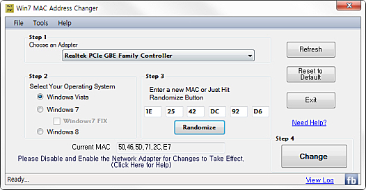 Windows 7에 기본으로 제공된 MAC 주소를 사용자가 원하는 주소로 변경할 수 있는 프로그램입니다