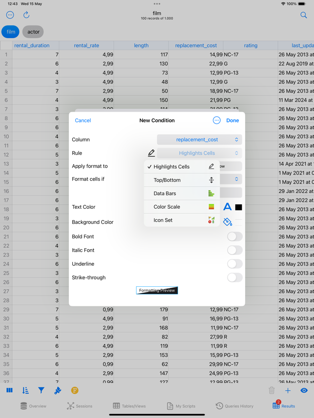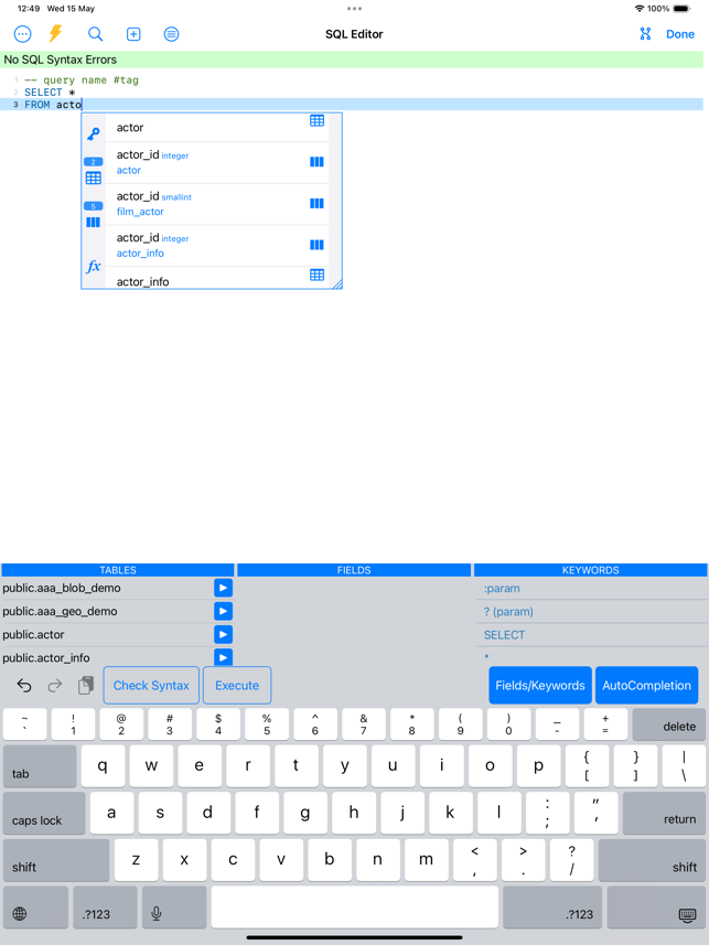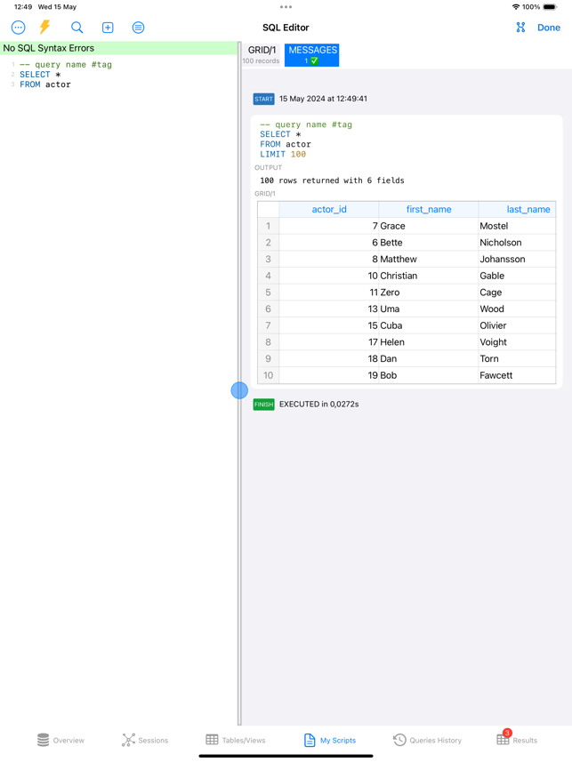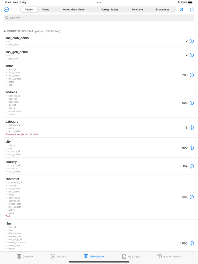MySQL Mobile Client allow you to access your MySQL database directly without any server setup. You can manage your data with a very clean and simple iOS user interface. FEATURES:• Connection over TLS encryption and SSH tunnel• Assisted table creation and alter structure• Explore, filter, sort, and quick search table data• Query script with OpenAI assisted composition and plan analysis• Database objects (tables, views, procedures, etc.)• Database statistics, sessions manager, server status graphs• ER Diagram Viewer• Advanced data grid for browse, edit, conditional formatting• Blob field preview, import and export• Job Activity Monitor• User list and Privileges• Import and Export in multiple formats• iCloud Sync for SQL and JS scripts• SQL plan analysis• Execute queries with Shortcuts AppOpenAI integration requires your key and is available on allowed regions only.Tested on MySQL 5.7 and 8.